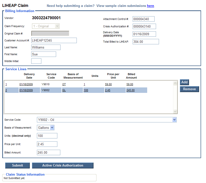 LIHEAP Billing Scenario